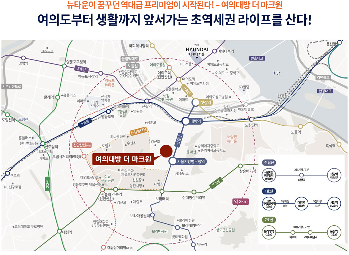더 현대 서울, 타임스퀘어, 롯데 백화점, 신세계 백화점 등의 대형 상업시설과 샛강생태공원, 보라매공원 등의 힐링 인프라까지 위치하고 있습니다.
